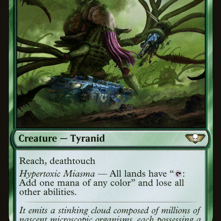 Set: Universes Beyond: Warhammer 40,000 Type: Creature — Tyranid Rarity: Rare Cost: {3}{G} Reach, deathtouchHypertoxic Miasma — All lands have... Read more