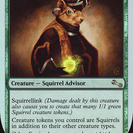 Set: Unstable Promos Type: Creature — Squirrel Noble Advisor Rarity: Rare Cost: {4}{G}{G} Squirrellink (Damage dealt by this creature also... Read more