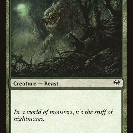 Set: Dark Ascension Type: Creature — Beast Rarity: Common Cost: {3}{G}{G} In a world of monsters, it's the stuff of... Read more