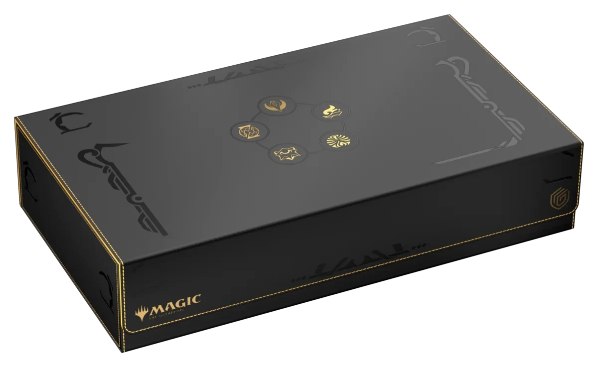 Ultimate Guard's Omnihive 1000+ Xenoskin with officially licensed artwork from Magic: The Gathering's "Secrets of Strixhaven" set is the ultimate Magic mass storage box for decks, cards, and accessories. Designed to hold multiple MTG deck boxes and/or play-mats simultaneously, it features two flexibly positionable and stackable magnetic dice trays over two compartments, durable Xenoskin material, high-quality microfiber inner lining, a strong magnetic closure and Ultimate Guard's trusted ZnapClaw mechanism. With capacity for eight Sidewinder 100+ or six Sidewinder 133+ deck boxes, the Omnihive 1000+ Xenoskin also holds up to 1000 double-sleeved cards in Ultimate Guard sleeves*, making it the perfect storage box for a cube.