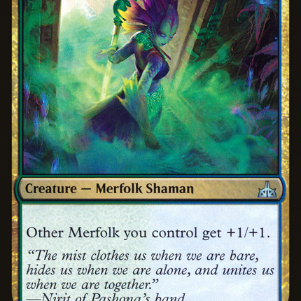 Set: Rivals of Ixalan Type: Creature — Merfolk Shaman Rarity: Uncommon Cost: {G}{U} Other Merfolk you control get +1/+1. "The... Read more