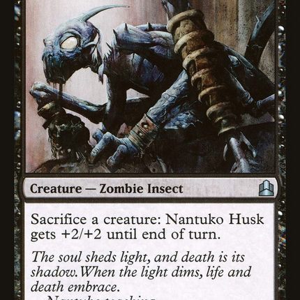 Set: Commander 2011 Type: Creature — Zombie Insect Rarity: Uncommon Cost: {2}{B} Sacrifice a creature: Nantuko Husk gets +2/+2 until... Read more