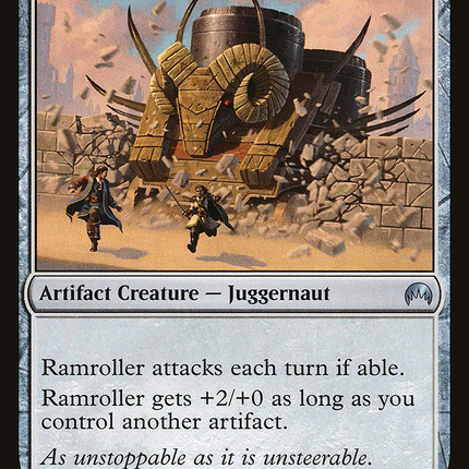 Set: Magic Origins Type: Artifact Creature — Juggernaut Rarity: Uncommon Cost: {3} Ramroller attacks each combat if able.Ramroller gets +2/+0... Read more